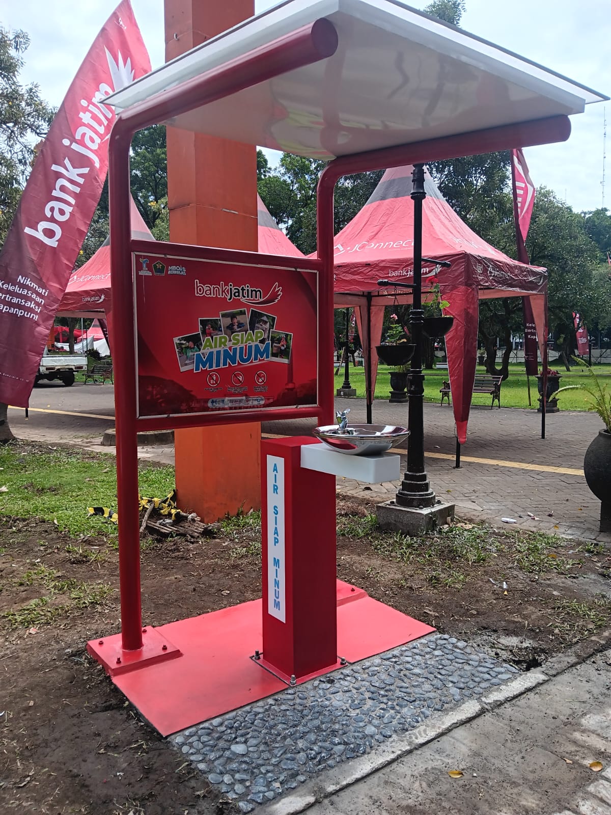 Hadirnya anjungan air siap minum di kawasan Alun-alun Merdeka ini merupakan wujud nyata sinergi dan kolaborasi antara Pemerintah Kota Malang, Bank Jatim selaku penyedia CSR dan Perumda Tugu Tirta dalam mendukung peningkatan kualitas fasilitas publik sekaligus pemenuhan kebutuhan dasar masyarakat akan air minum yang aman dan sehat.