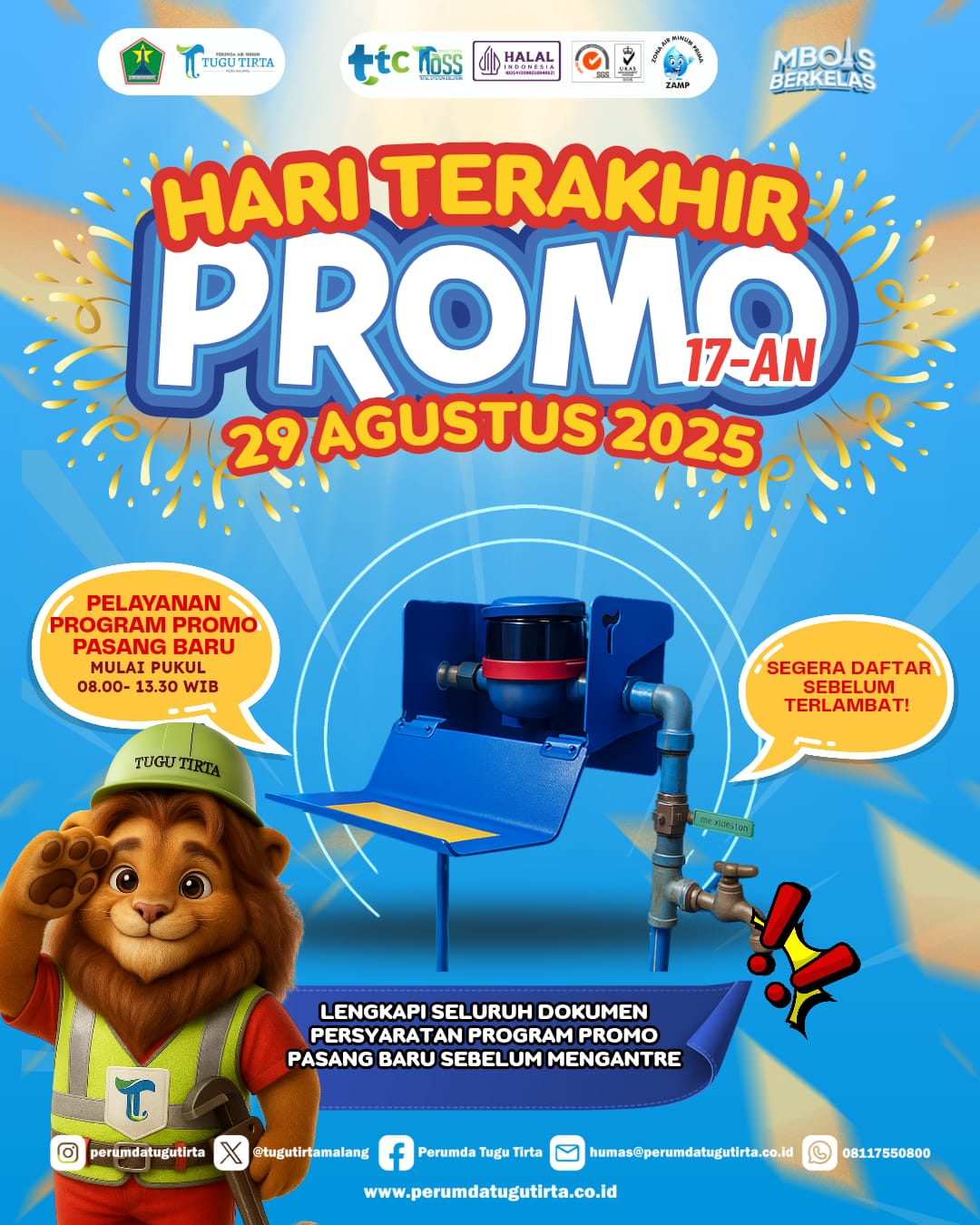 MALANG- Bulan Agustus segera berakhir, begitu pula program promo pasang baru Tugu Tirta.