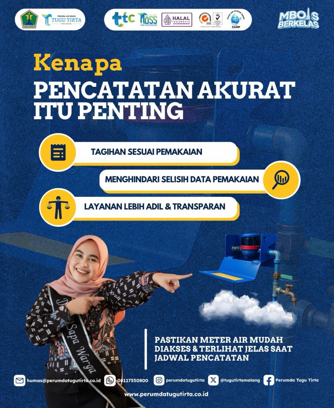 Melalui sistem yang terstandar dan modern, Perumda Tugu Tirta terus berupaya memberikan pelayanan air minum yang akurat dan dapat dipercaya.