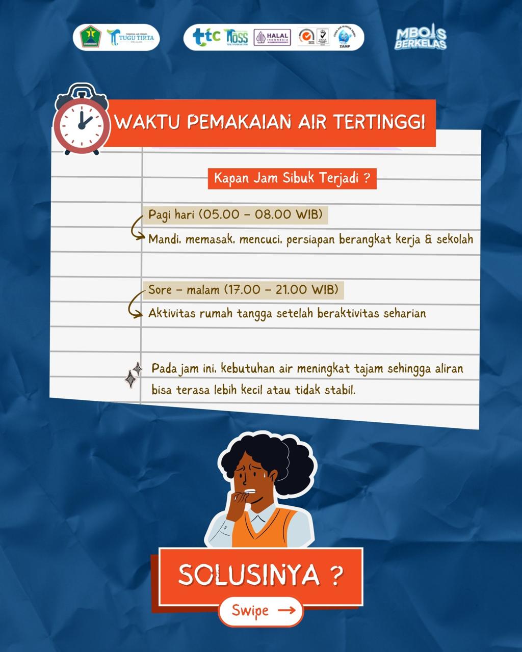 Solusi cerdasnya: pakai tandon air di rumah sebagai cadangan, supaya kebutuhan air tetap aman meski di jam sibuk.